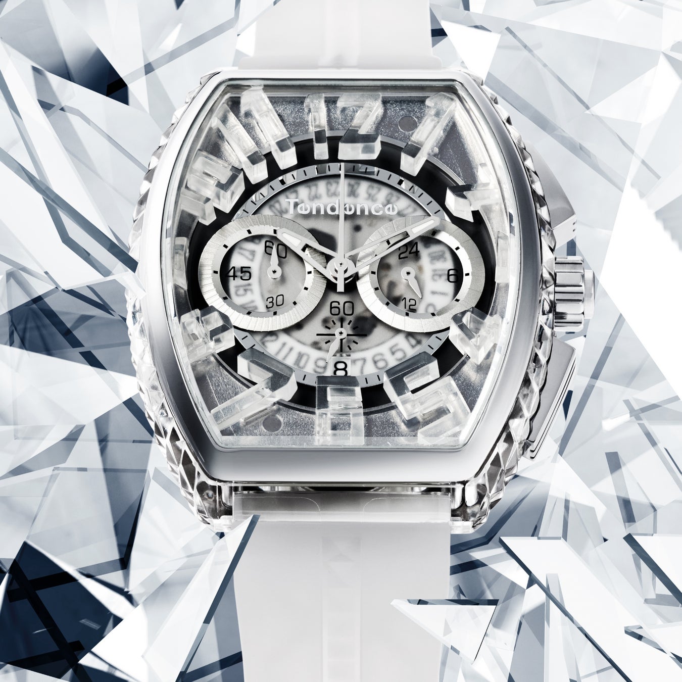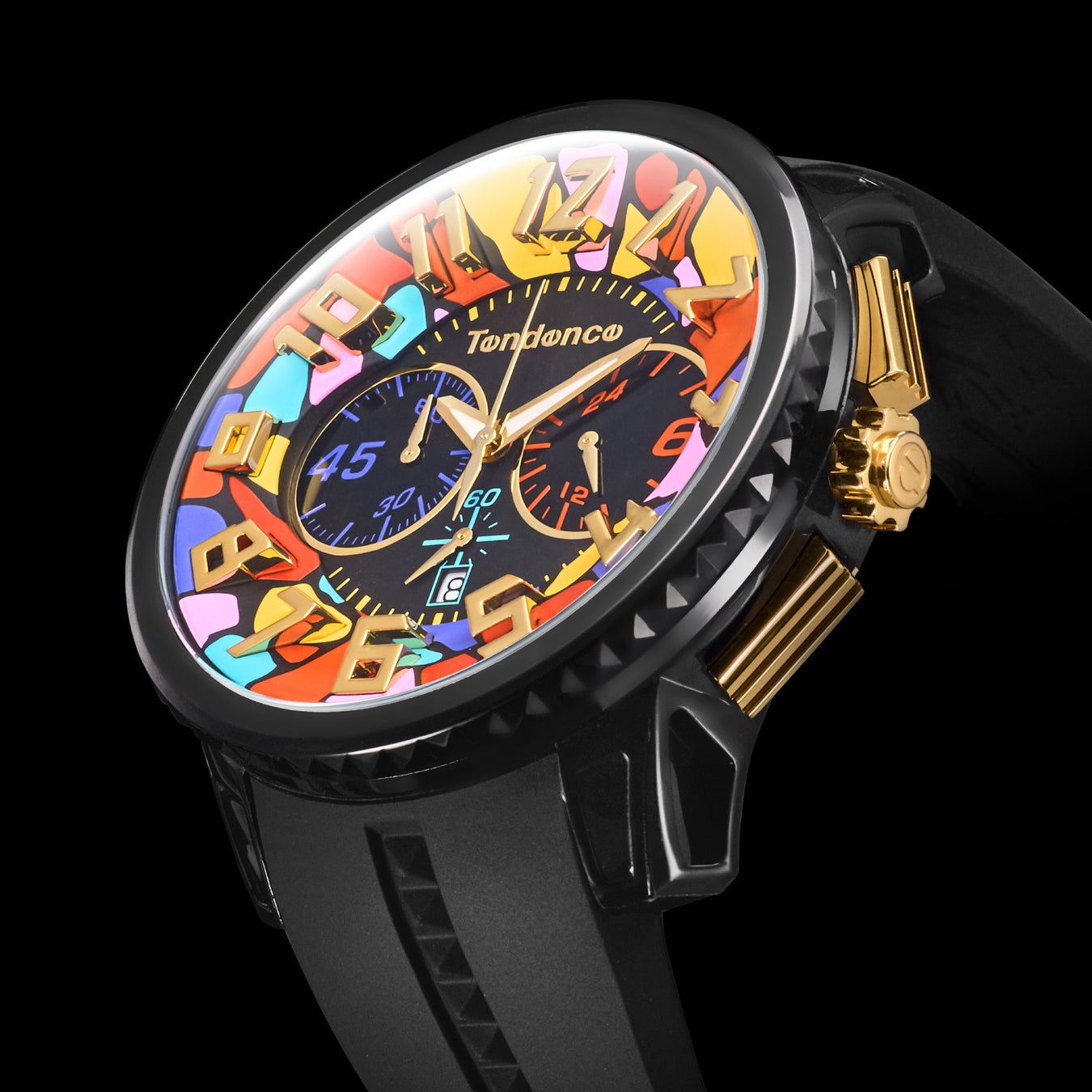 「Larger Than Life(人生を豊かに)」をコンセプトに、イタリアデザインとスイスのクオリティーをフュージョンさせた斬新なデザインが特徴のひとつです。2009年にはスイスのBASEL WORLDに出店し、TOP100ブランドにも選出される等、時計業界からも注目を集めています。愛用者には、有名アスリートや俳優をはじめ、モデル、アーティストなどファッションにこだわりをもっている方が多く、ファッションウォッチとしても選ばれています。2014年には、日本初の旗艦店が表参道にオープンし、日本最大級の品揃えを展開。2017年にはテンデンス誕生10周年を迎え、2018年には世界初のデザイン技術を駆使した新コレクション「De’ Color」や大人気アニメ「ONE PIECE」のログポース再現コラボレーションなどで注目を集めました。2021年には海外でも人気の高い“浮世絵”をデザインに落とし込み日本を表現した「JAPAN ICON」を発表し、その大胆ながら繊細なデザインに注目が集まっています。2022年はブランド生誕15周年を迎え、約6年ぶり、ブランド初のトノー型の時計『PIRAMIDE(ピラミッド)』を発売しました。