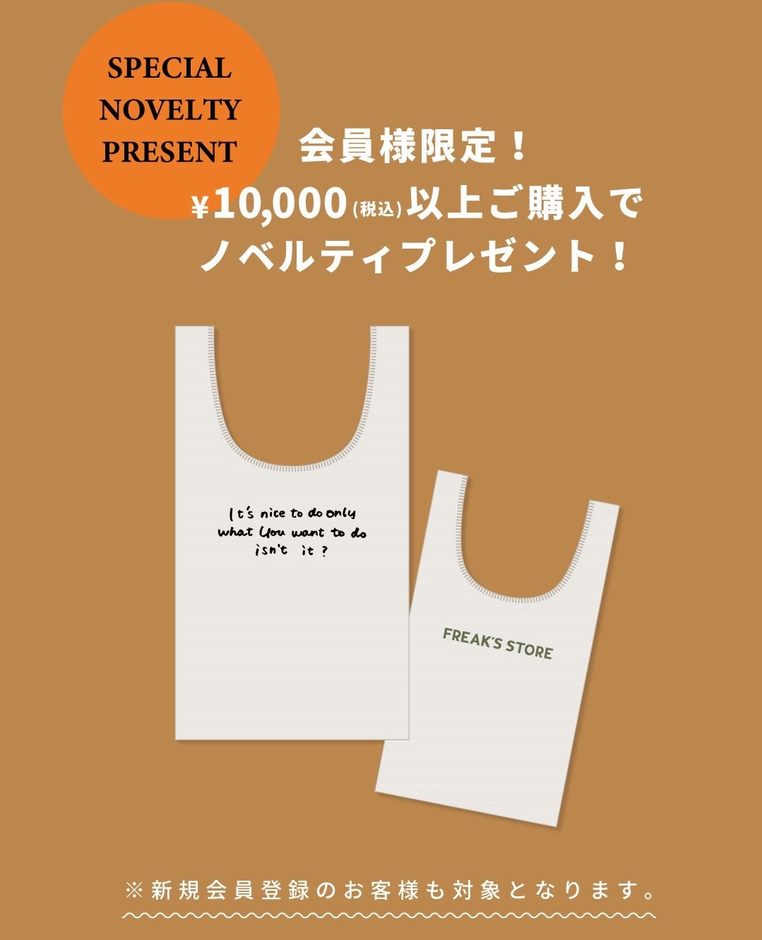 オープンを記念し、FREAK'S STOREの刺繍ロゴ入りトートバッグをプレゼントいたします。