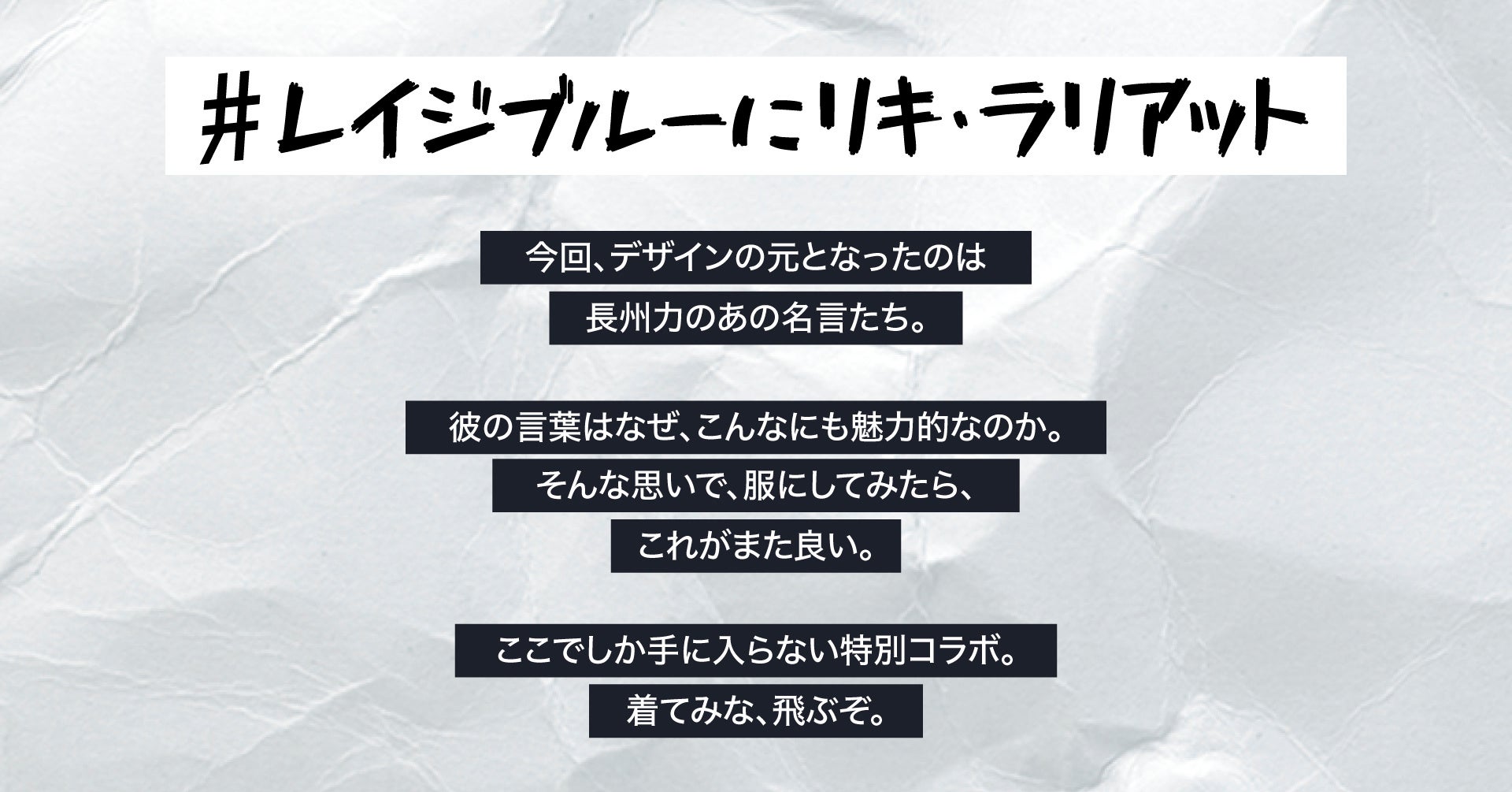 【ドットエスティフェス限定企画 第三弾】新CMでのお茶目なダンスやアテレコが話題の長州力さんと初コラボ!『井レイジブルーにリキ・ラリアット』長州力さんの“名言”をモチーフにしたストリートアイテムが登場