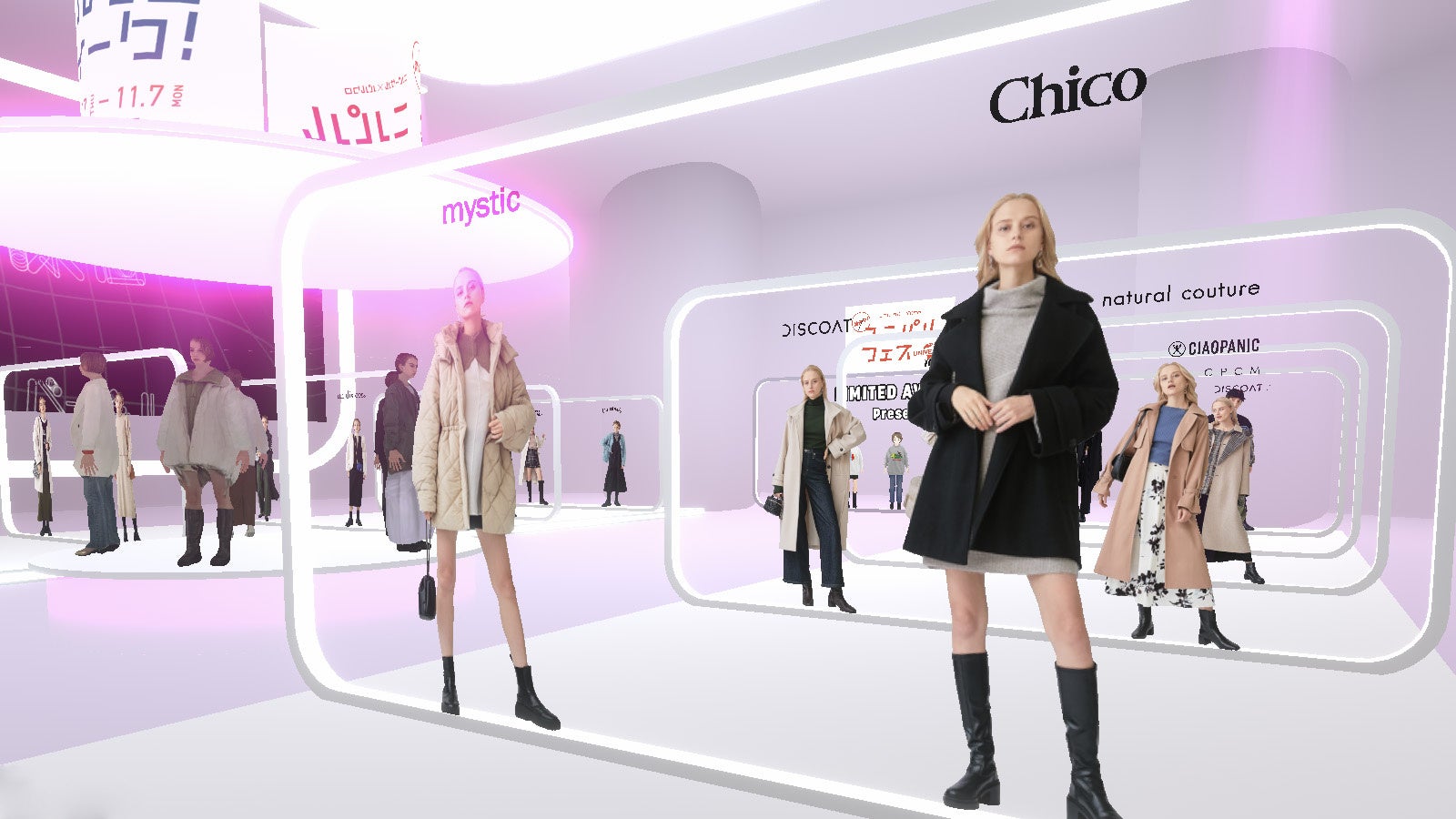 3Dデータを含む総勢25体の今シーズンおすすめコーディネートが部屋中に集結し、バーチャル空間でもまるでリアル店舗のような体験をお届けし。